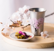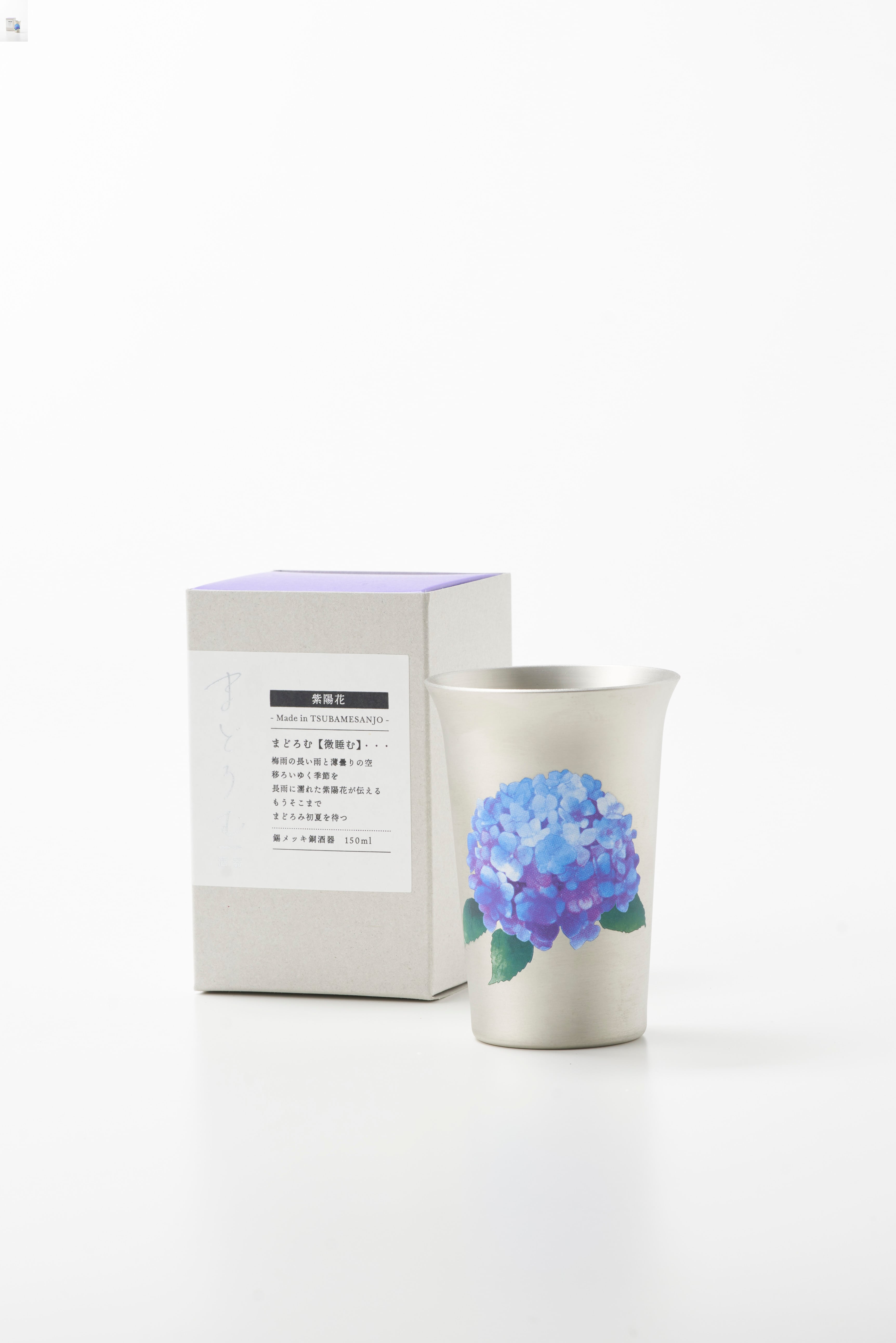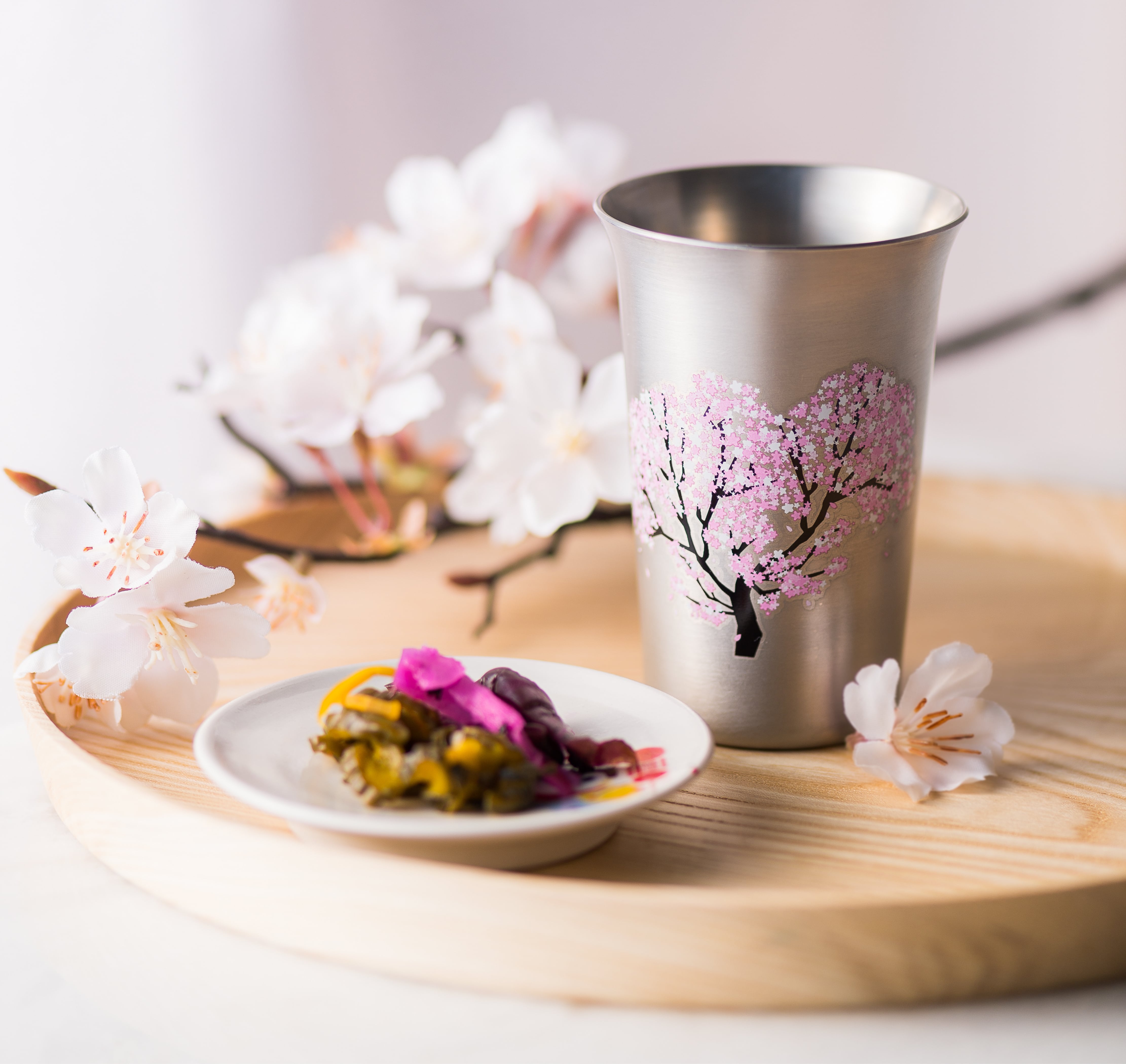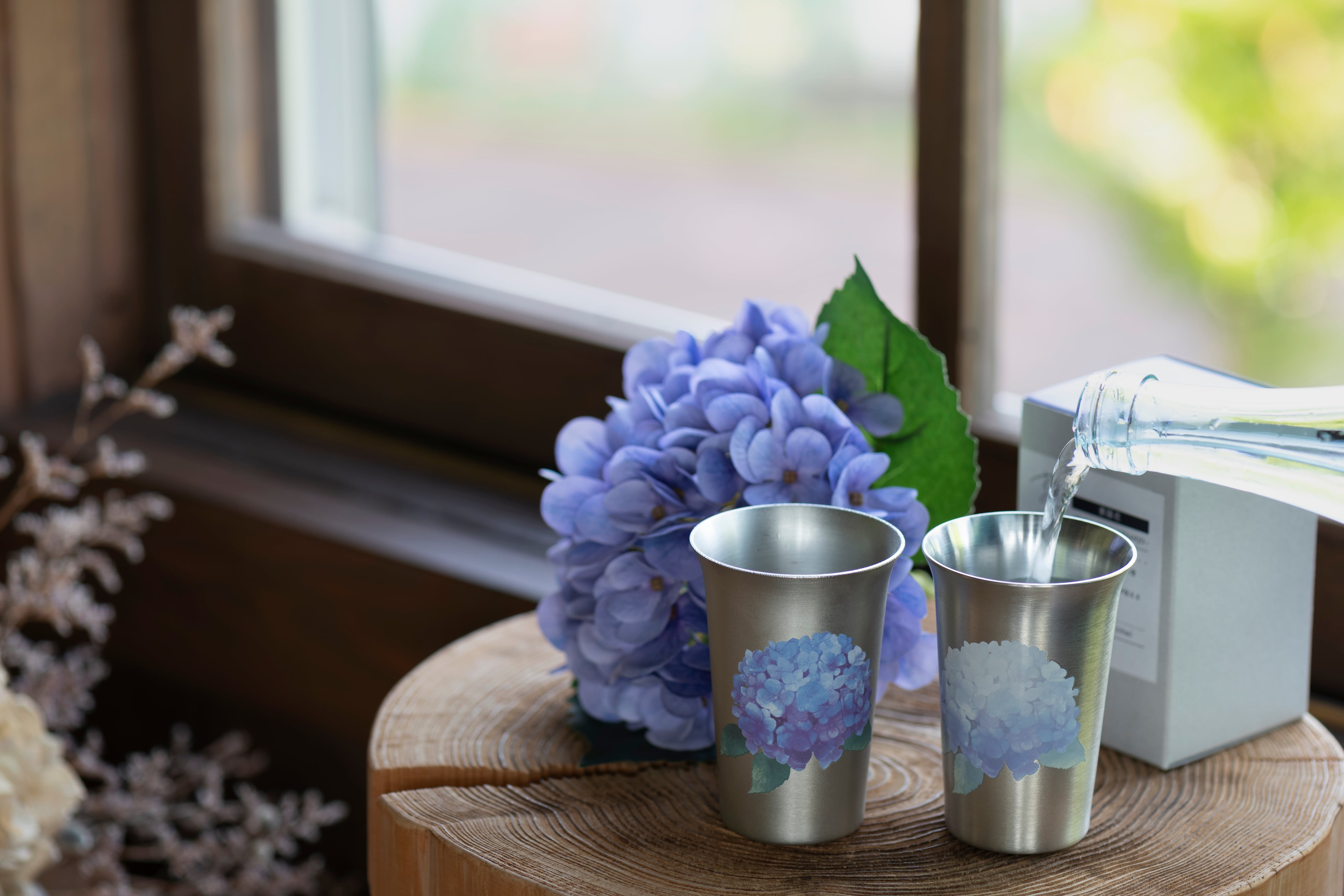 まどろむ酒器は、銅に錫でコーティングされた金属製の酒器に、約16℃以下の冷たい液体を入れることで絵柄が色づき季節の風物詩を愉しんで頂ける酒器です。