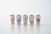 表面の柄は冷たい温度に反応して色づく仕掛けになっています。約16-17℃以下の冷たい液体を入れると、花はまるで咲き誇るように、花火はまるで打ちあがるように色づきます。お酒を注いで、色づく変化を目で見て楽しみながらお酒を味わえる、新しい酒器です。