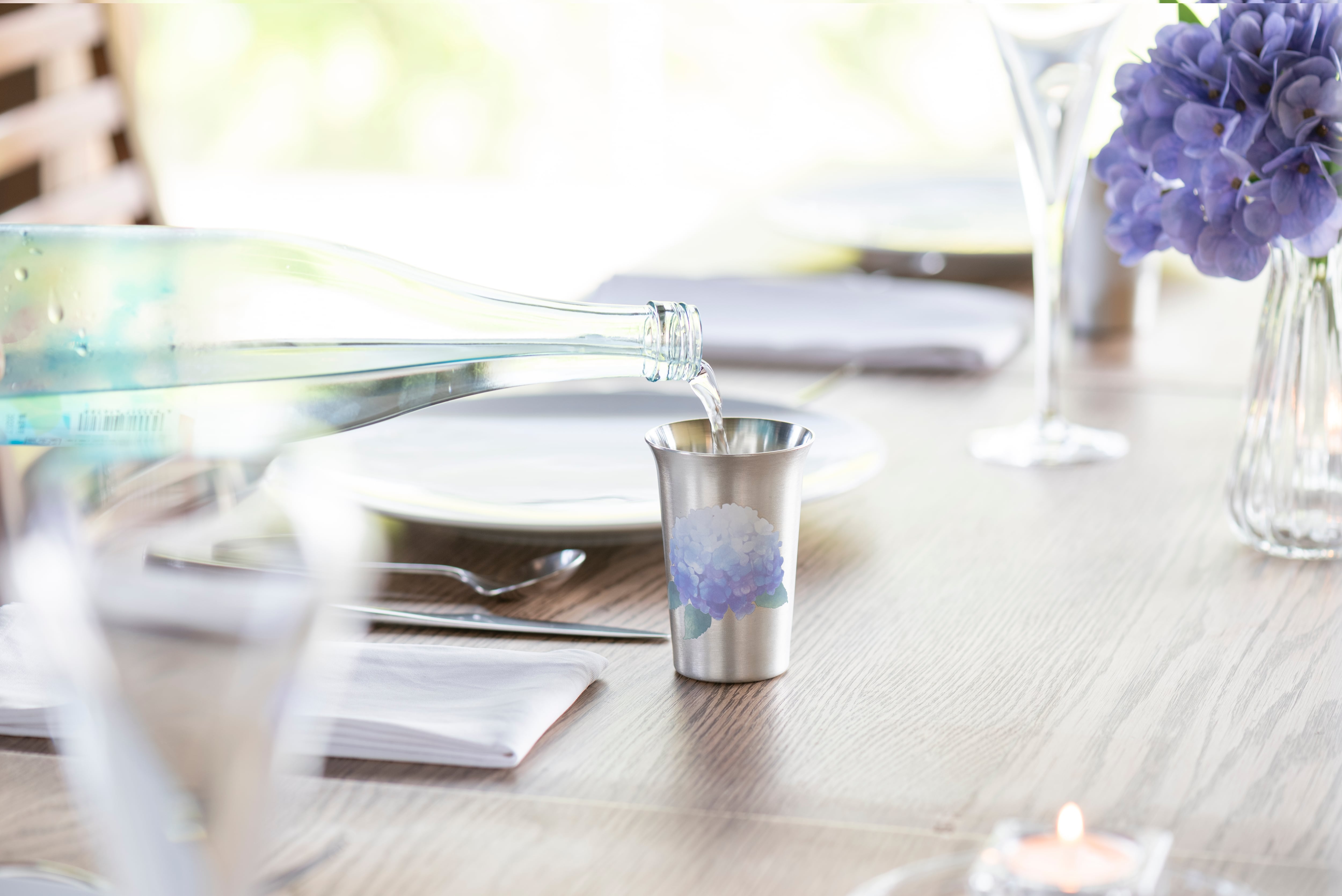 酒器に注いだり、注がれたりしながら色づく様を楽しむ。この酒器には、お酒を飲むシーンの、人と人がつながる瞬間を楽しめる魅力があります。もちろん、お酒だけでなく、様々な飲み物でもご利用いただけます。大切な人に贈るギフトに。イベントに。レストランや日常の食卓に現れる、特別な時間におすすめです。