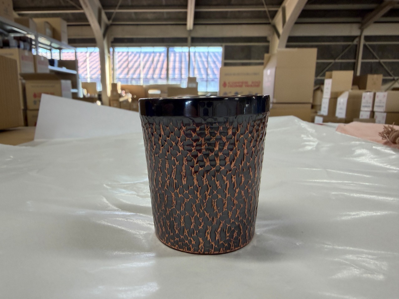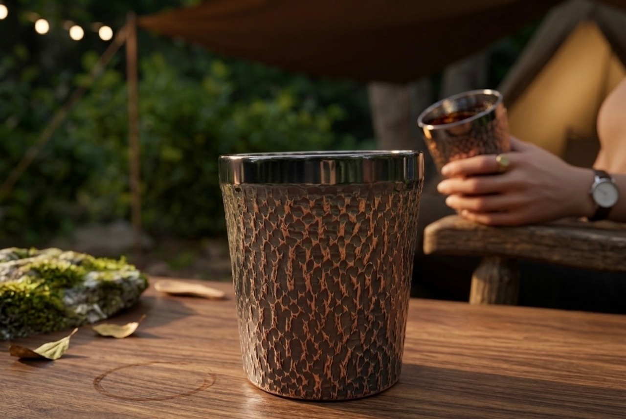 鎚目が施された銅は、シンプルながらも上品な雰囲気を演出し、手に馴染む心地よい重さが安定感を与えています。